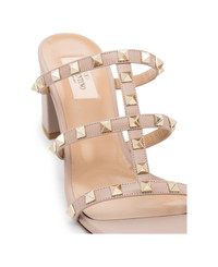 powder pink calf leather gold-tone Rockstud detailing caged design open toe backless branded leather insole 60mm block heel Composition: Calf Leather, 100% Made in: Italy Color: Powder Model number: WS0C47VODP45