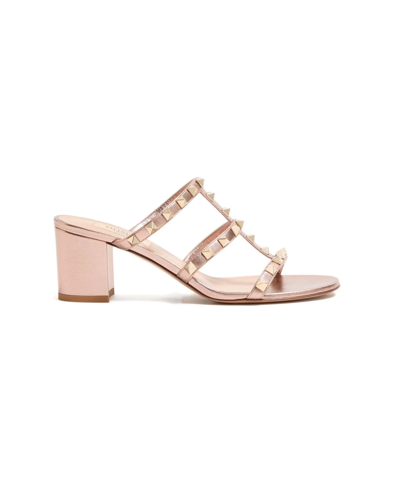 Valentino sandals pink leather gold-tone studs open toe block heel The full look includes Valentino Garavani accessories. Composition: Calf Leather, 100% Made in: Italy Color: Pink Size and fit: - Heel 6 cm Model number: WS0C47QKHGF9