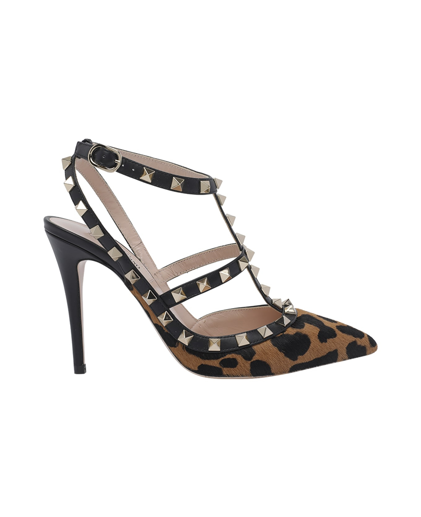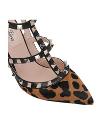 Valentino Garavani animalier Rockstud pumps, pointed toe, lateral buckle, studs allover, animalier print Composition: 100% Calf Leather With Hair Calf/leather Sole Made in: Italy Color: Brown Size and fit: - Heel: 10 cm Model number: S0393AMXAB7