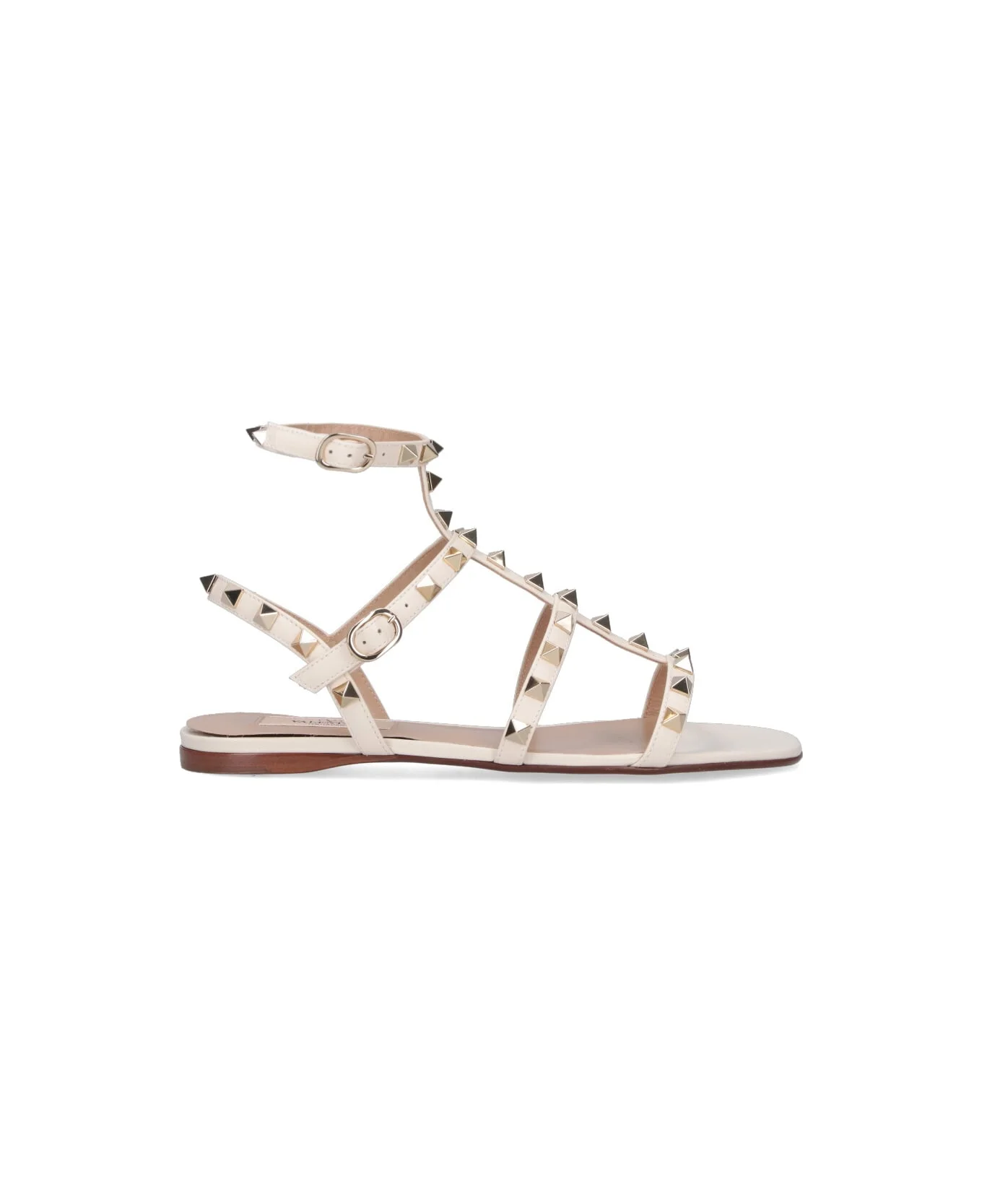 Valentino Rockstud sandals in cream calf leather with open round toe, all-over Rockstud details, adjustable buckle closure, and leather sole. Composition: 100% Calf Leather Made in: Italy Color: White Model number: 8W2S0A05VODI16