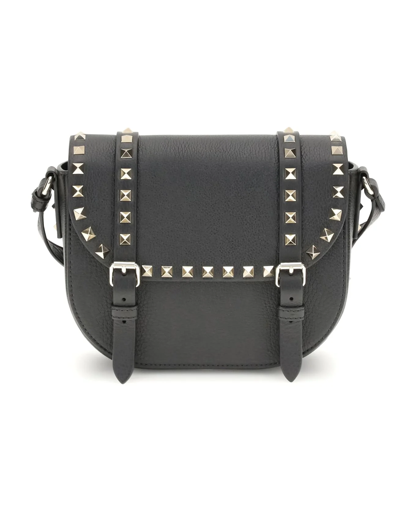 Valentino garavani's rockstud small messenger shoulder bag combines character and sophistication. made with a front flap closure and buckles, it is embellished with the iconic studs along the profiles. featuring an adjustable shoulder strap and a handy back pocket, it's perfect for adding a punchy touch to any look. Composition: 100% % Calf Leather Bos Taurus Made in: Italy Size and fit: - W 19.5 x H 15 x D 11.5 cm Model number: 7W2B0Q95VSF0NO