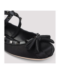 Valentino Garavani Black Satin Ballerinas. Vamp crafted from black satin, squared round toe, tonal bow detail on the top, black leather piping and ankle strap, black signature studs embellishment, branded leather insole and outsole. Made in: Italy Color: No Nero Model number: ZW2S0HB6EQL0NO