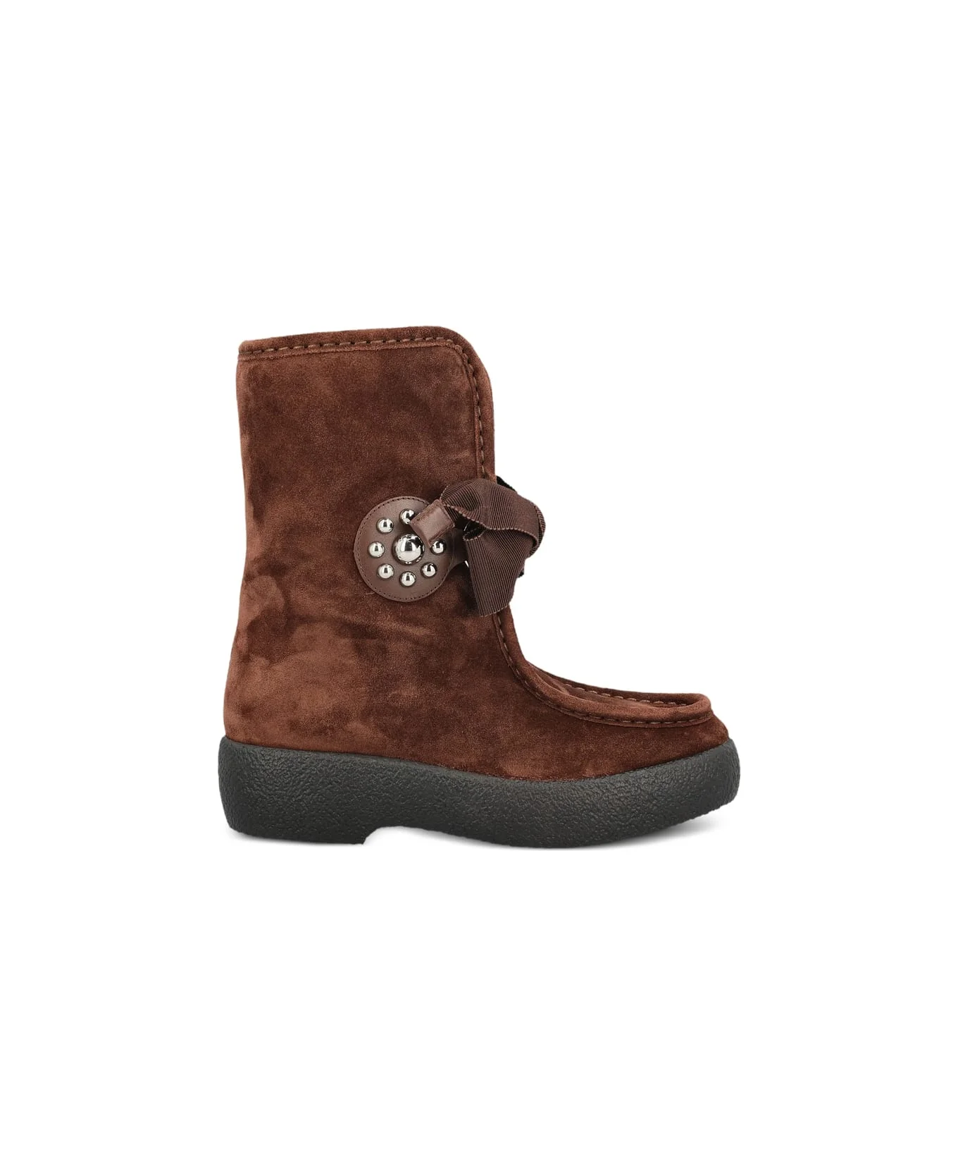 brown suede leather bow detail crystal embellishment studded detail rubber sole Made in: Italy Color: BROWN Model number: 7W2S0MM7JEGDKB
