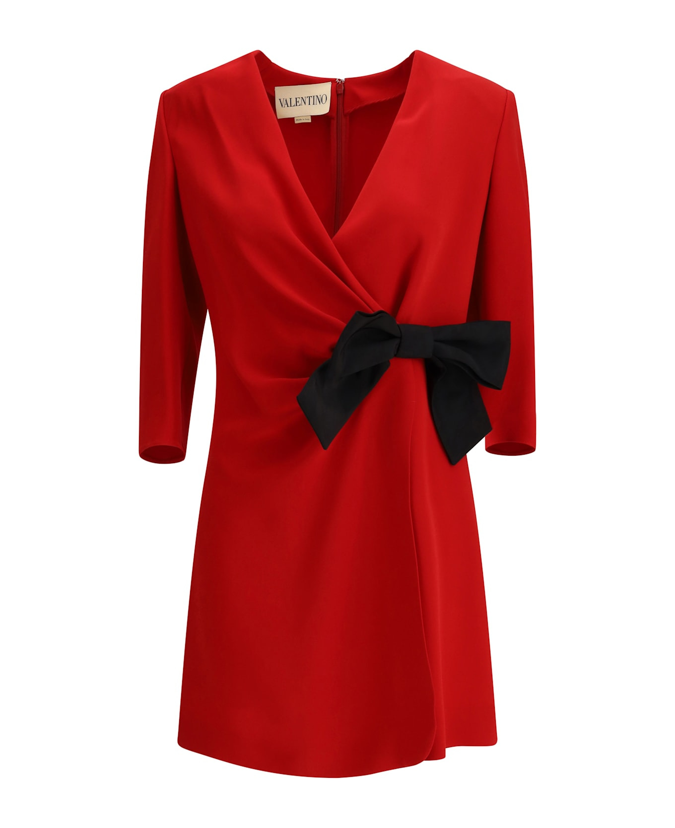 The short silk dress with bow by valentino garavani embodies the sophisticated elegance of the maison s ready-to-wear. crafted in red silk, the essential silhouette is enriched by a faille fabric bow that adds a refined and striking detail. the back zip closure ensures a clean line, enhancing the lightness and fluidity of the piece. Composition: 100% % Silk, 91% % Viscose, 9% % Elastane Made in: Italy Color: RED Model number: 7B0VAGG71MM9QK
