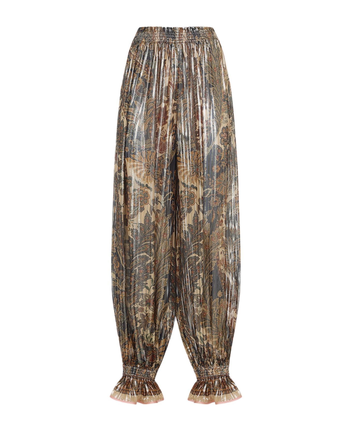 Valentino Beige Silk Pants. Crafted from beige silk, signature Georgette Cachemire Voyage Imaginaire print all over, elastic waistband, wide leg, elastic cuffs with ruffles. Made in: Italy Color: Beige Multicolor Marrone Model number: 6B0RB6G09AWUK1