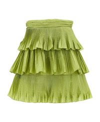 Mini skirt in pleated taffeta with flounces, unlined, side zip closure. Composition: 100% silk Made in: Italy Color: Green Size and fit: - true to size fit Model number: B3RADN59176Y0
