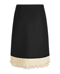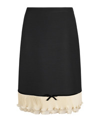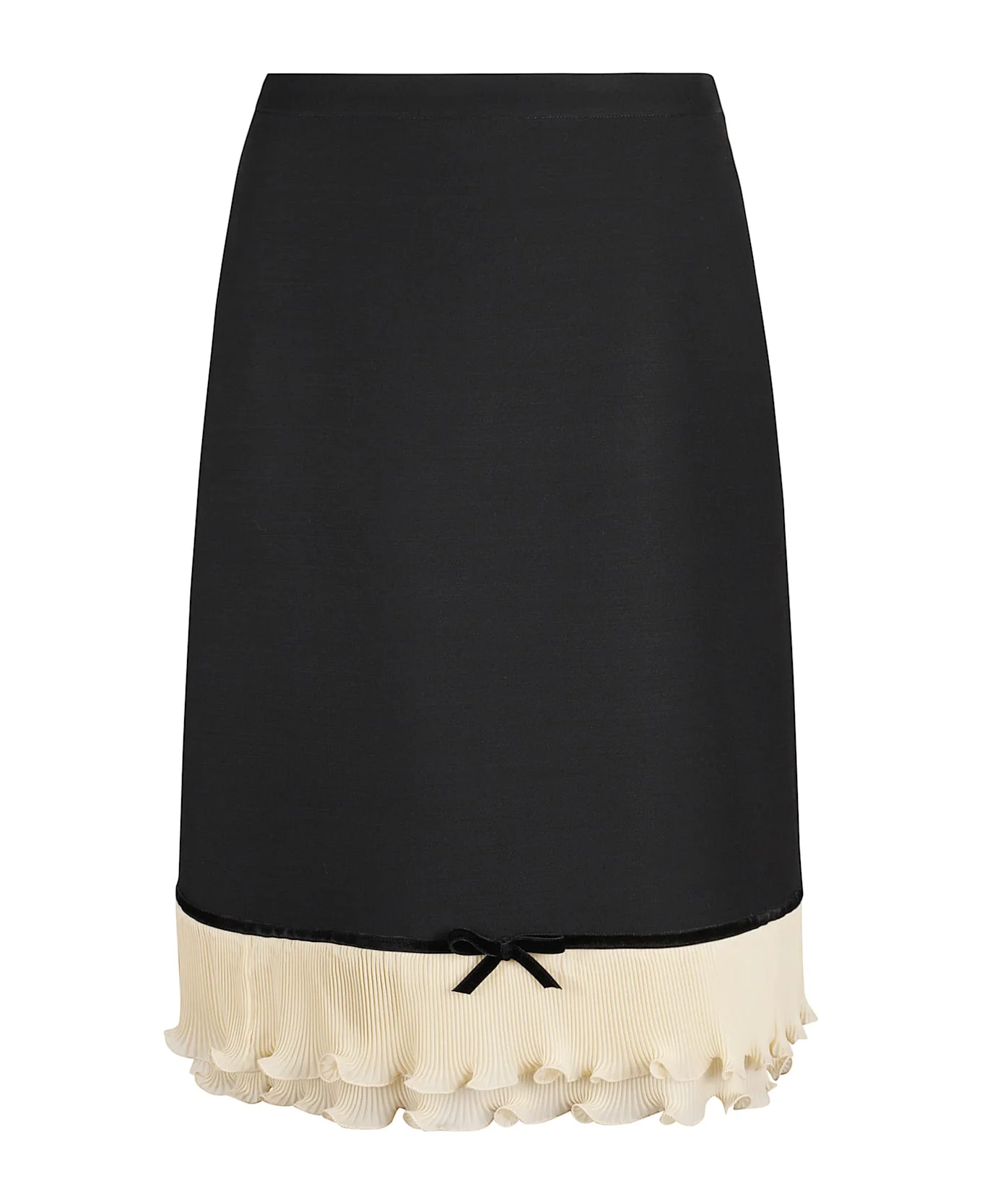 Black VALENTINO midi skirt featuring a cream-colored pleated ruffle at the hem with a velvet bow and a side zip closure. Composition: 35% Silk, 65% Wool Virgin Made in: Italy Color: Black Model number: 7B3RADG01CFTB1