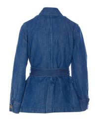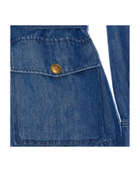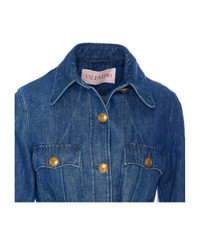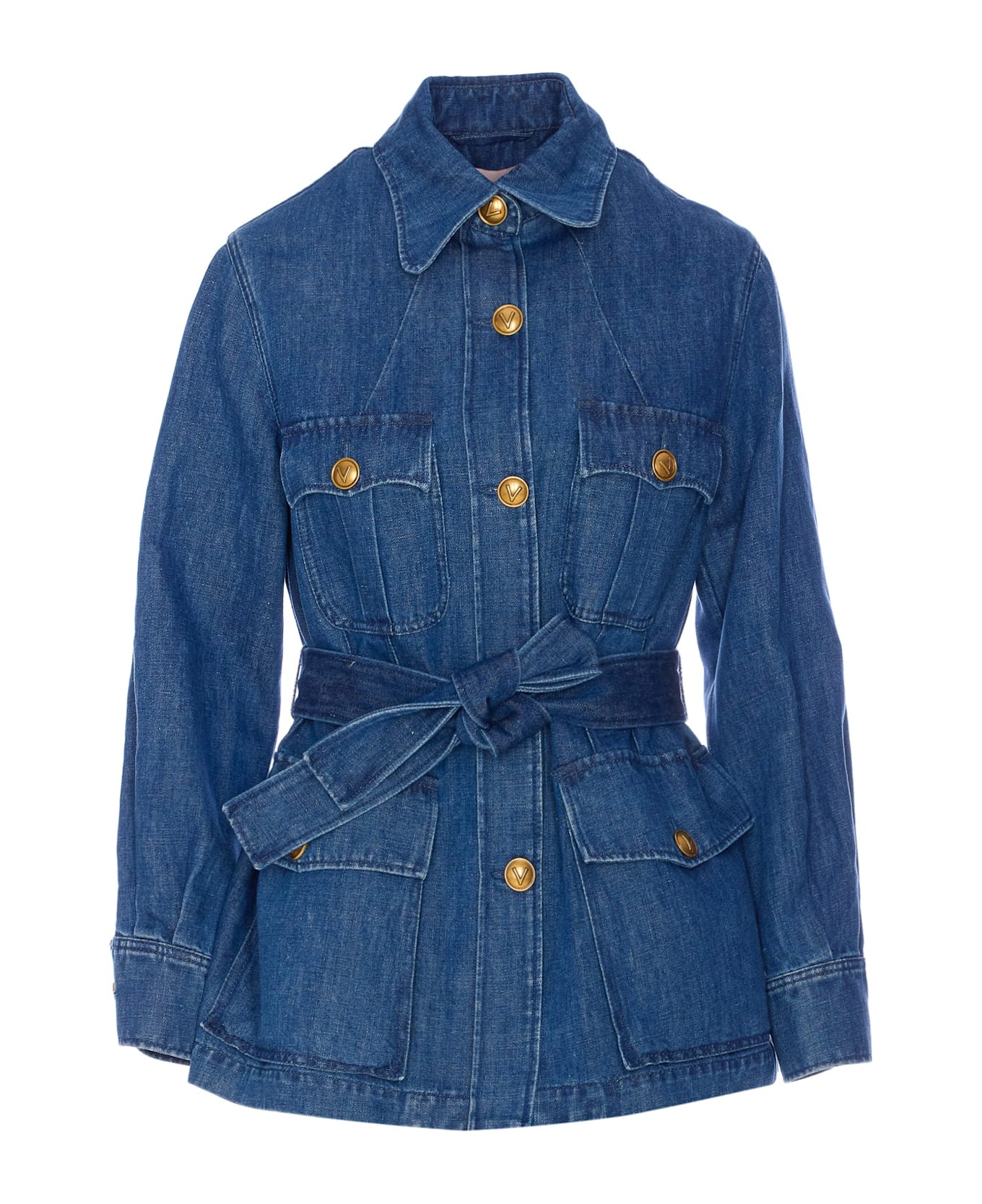 Valentino denim shirt with frontal logo buttons closure, regular collar, pockets with logo button detail, belt on waist, split on the back Composition: 64% Cotton, 36% Flax Made in: Italy Color: Blue Size and fit: - EU SIZE (IT) Model number: DC03J94C558