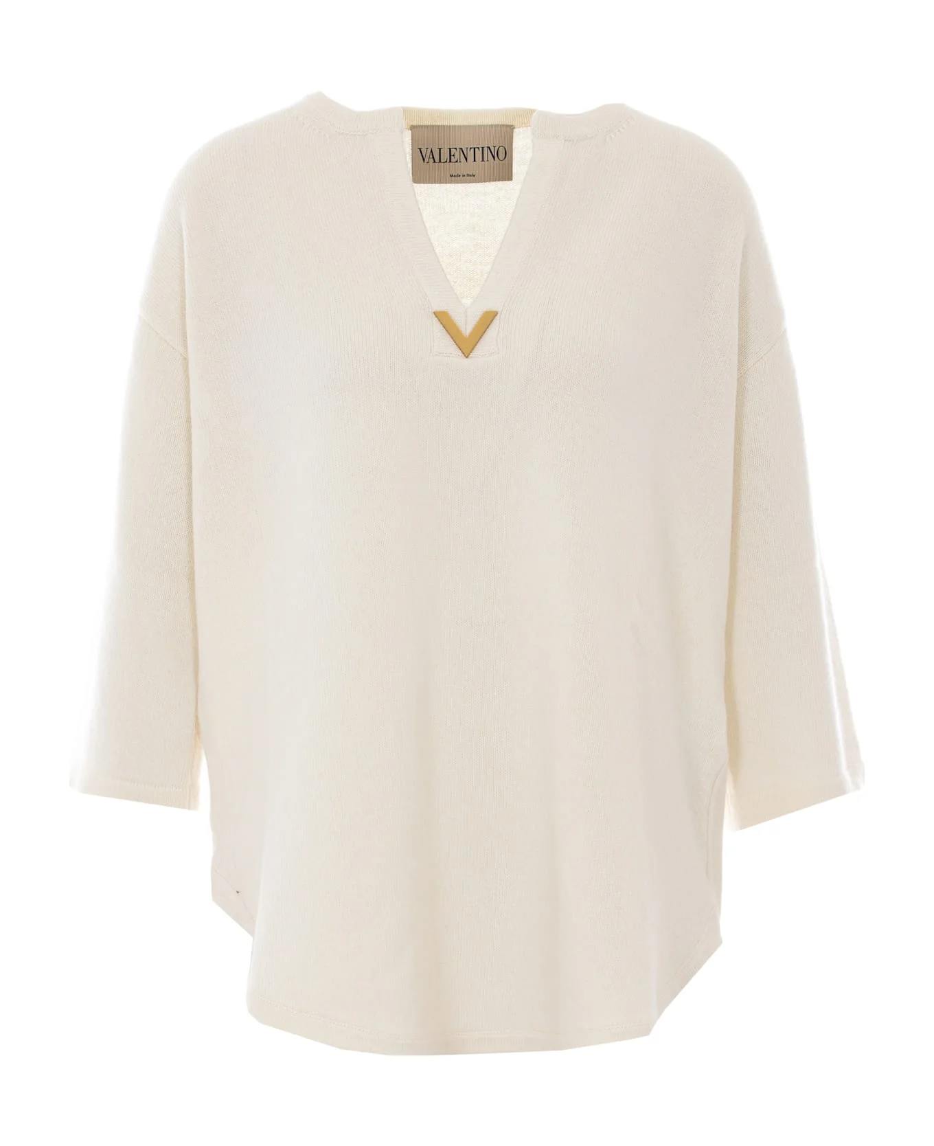 Valentino Garavani ivory white sweater, with v logo detail on front, v neck Composition: 100% Virgin Wool Made in: Italy Color: White Size and fit: - US SIZE Model number: KC71YA38A03