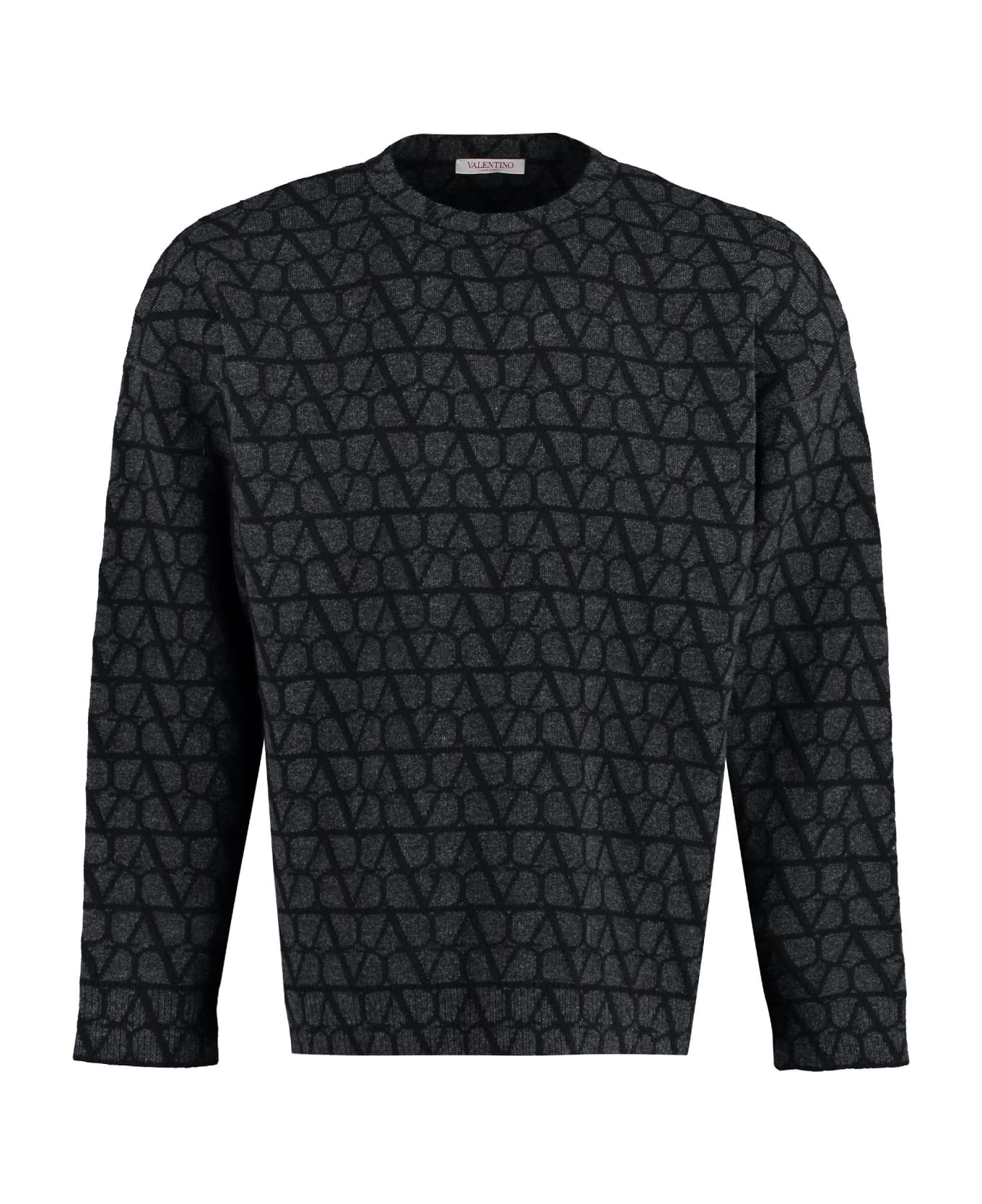 100% Virgin wool - Long sleeves - Round neck - Ribbed trims - Hand wash - All-over logo pattern Made in: Italy Color: Gray Size and fit: - oversize fit Model number: 3V3KC27A9K3MJG