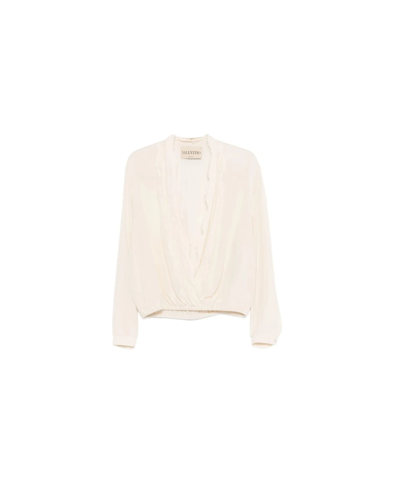 off-white lace trim elasticated hem long sleeves V-neck Made in: Italy Color: NEUTRALS Model number: 8B3AEBH021BAD6