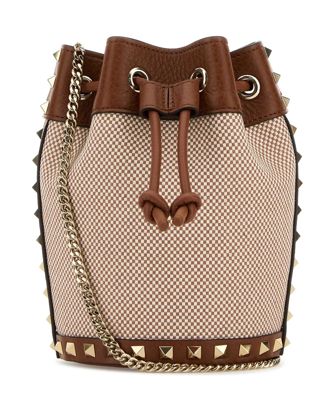 Two-tone Canvas Rockstud Bucket Bag