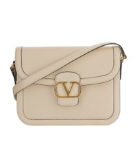 Valentino Garavani 9TO5 shoulder bag made of smooth calfskin leather Flap and magnetic button closure Signature VLogo detail on front Nappa leather lining Interior with three compartments and one flat pocket with button Adjustable shoulder strap Ivory Made in Italy Composition: 100% calfskin Made in: Italy Color: BUTTER WHITE Size and fit: - Height: cm 18.5 - Width: cm 24.5 - Depth: cm 8 Model number: 6W2B0R15UHFREN