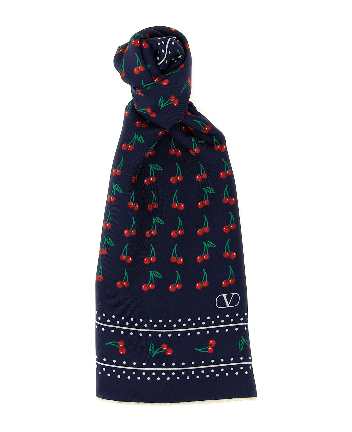'Cherryfic' print silk scarf. Composition: 100% silk Made in: Italy Color: Blue Size and fit: - 70 x 70 cm Model number: W2EK001EXBCEU