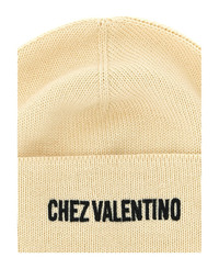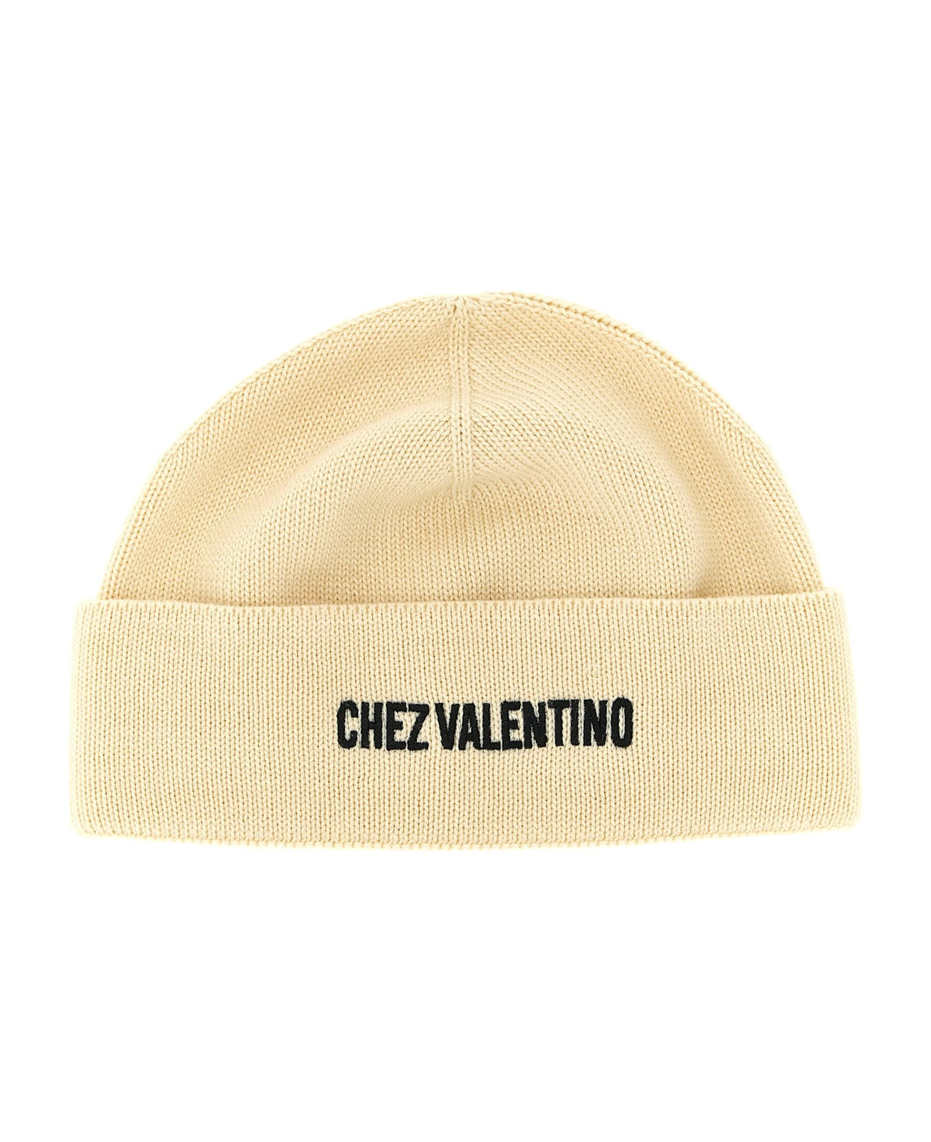 Knitted virgin wool beanie with contrast 'Chez Valentino' embroidery on the front. Composition: 60% cotton 40% virgin wool Made in: Italy Color: White Model number: YHB02RFZL581