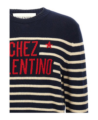 7 striped fineness wool sweater with front jacquard 'Chez Valentino' pattern, crew neck, long cuffed sleeves. Composition: 100% virgin wool Made in: Italy Color: Blue Size and fit: - true to size fit Model number: V3KC34WB1WDYB