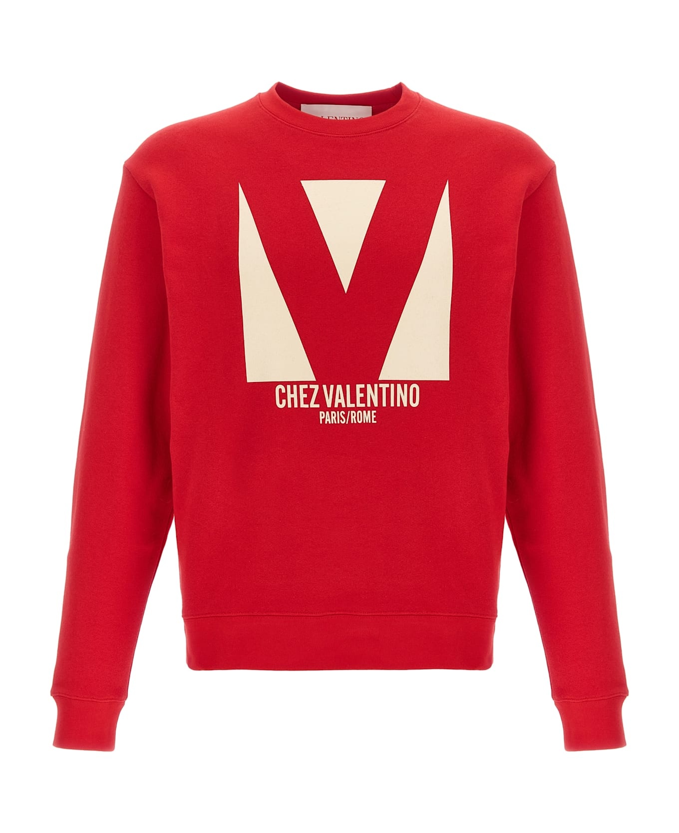 Brushed cotton sweatshirt with front 'Chez Valentino' print, crew neck, long cuffed sleeves. Composition: 100% cotton Made in: Italy Color: Red Size and fit: - Comfort fit Model number: V3MF28RAQB157