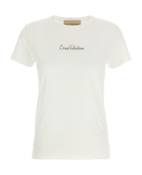 Light cotton T-shirt with front 'Chez Valentino' embroidery, crew neck, short sleeves. Composition: 100% cotton Made in: Italy Color: White Size and fit: - true to size fit Model number: B3MG25G9L9A03