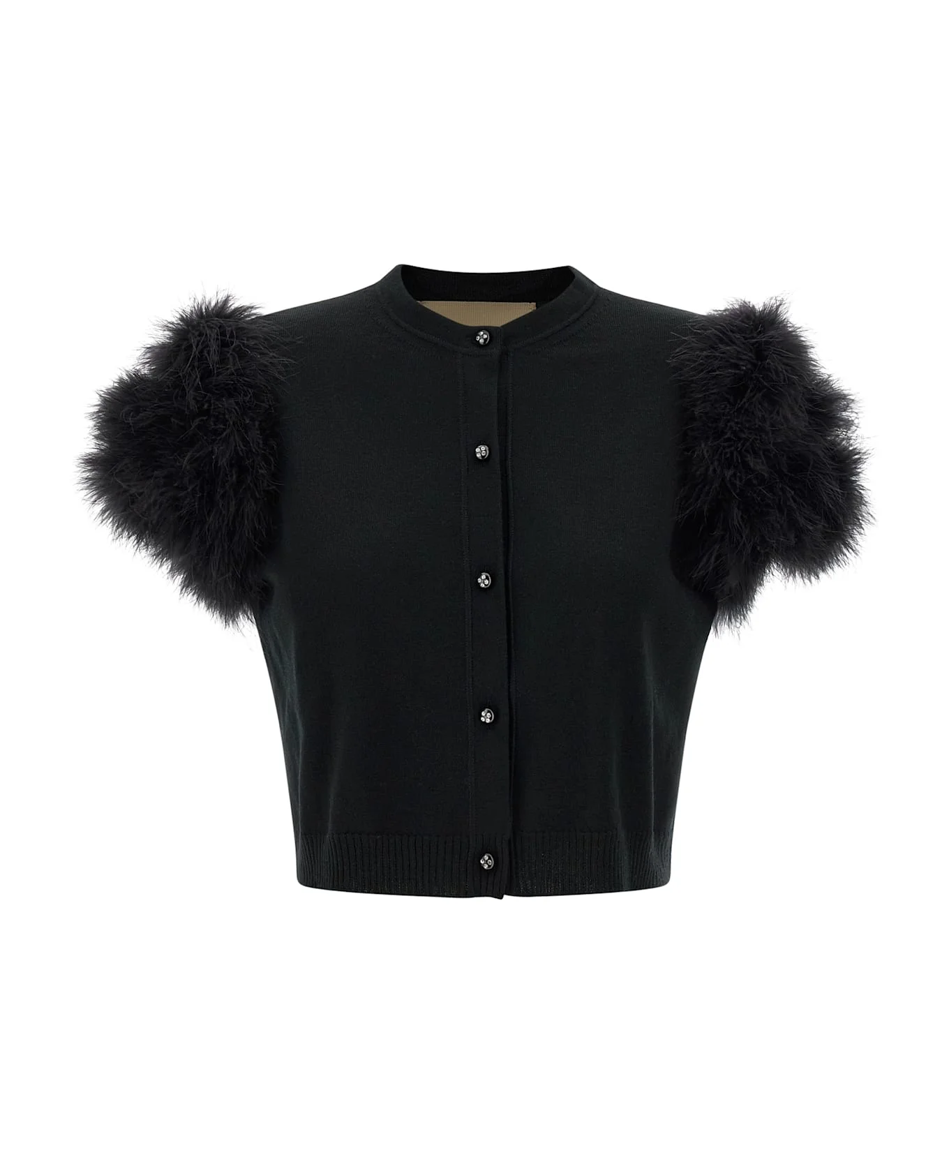 WOOL KNIT CARDIGAN WITH FEATHERS