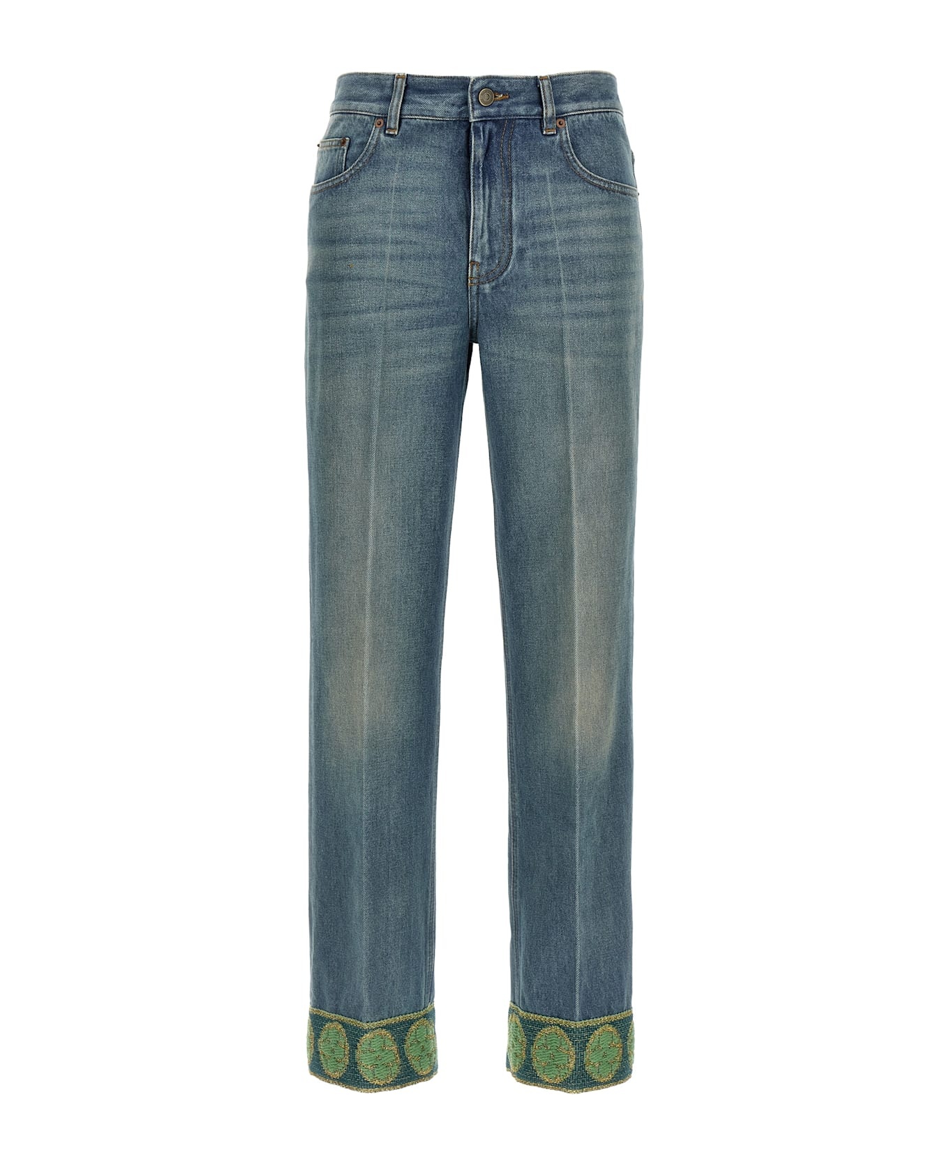 DENIM TROUSERS WITH JACQUARD TRIMS