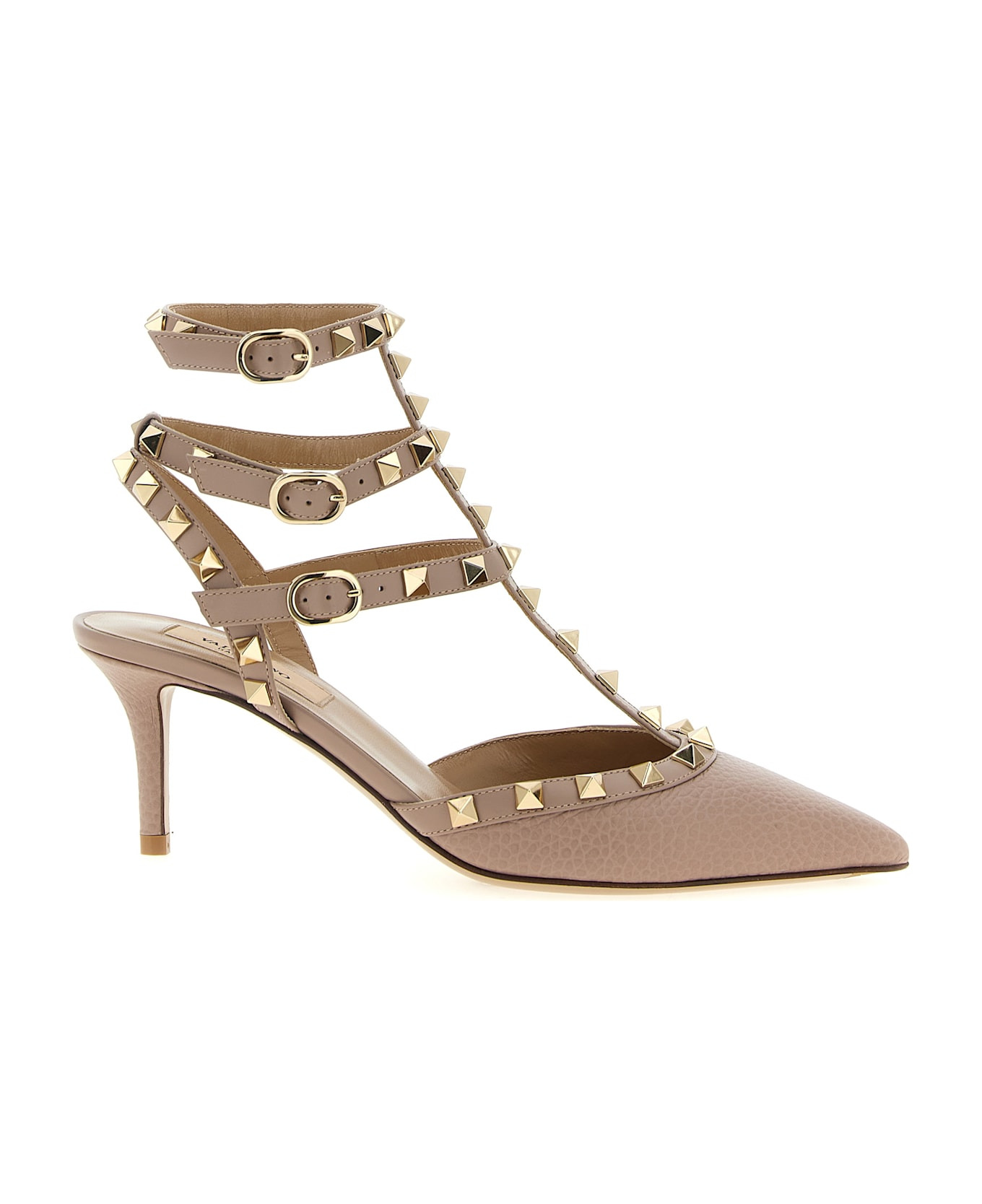 'Rockstud' pumps in elk print calf leather, adjustable straps and contrasting profiles in smooth calf leather with metal stud applique, pointed toe, heel, leather sole. Composition: 100% calfskin leather (Bos Taurus) Made in: Italy Color: Pink Size and fit: - EU WOMAN - Heels: 6,5 cm Model number: W2S0375VCEP45