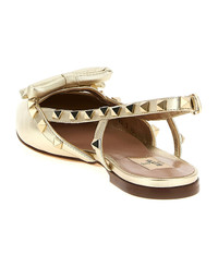 'Rockstud' laminated leather slingbacks with metal stud applications, pointed model with puffy bow detail and front cut-out, adjustable strap, leather sole. Composition: 100% leather Made in: Italy Color: Gold Size and fit: - EU WOMEN Model number: W2S0IQ2VVPR16