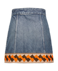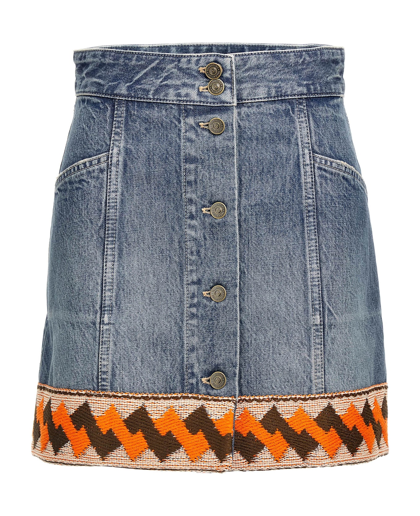 Cotton denim mini skirt with trimming detail on the hem, front button closure, pockets. Composition: 64% cotton, 36% linen Made in: Italy Color: Multicolor Size and fit: - true to size fit Model number: B3DD19Z94U558