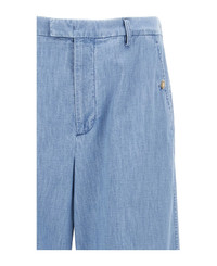 High-waisted cotton denim jeans with hook and button zip closure, pockets, wide leg with stretched pleat and turn-up. Composition: 100% cotton Made in: Italy Color: Blue Size and fit: - true to size fit Model number: V3DD03UALM508