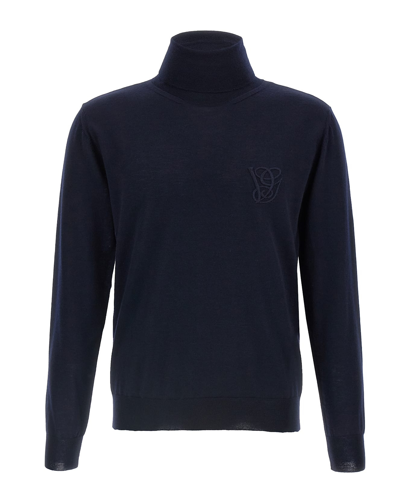 Virgin wool turtleneck sweater, tone-on-tone VG logo embroidery on the front, high neck, long cuffed sleeves. Composition: 100% virgin wool Made in: Italy Color: Blue Size and fit: - true to size fit Model number: V3KC34RB0UCLJ