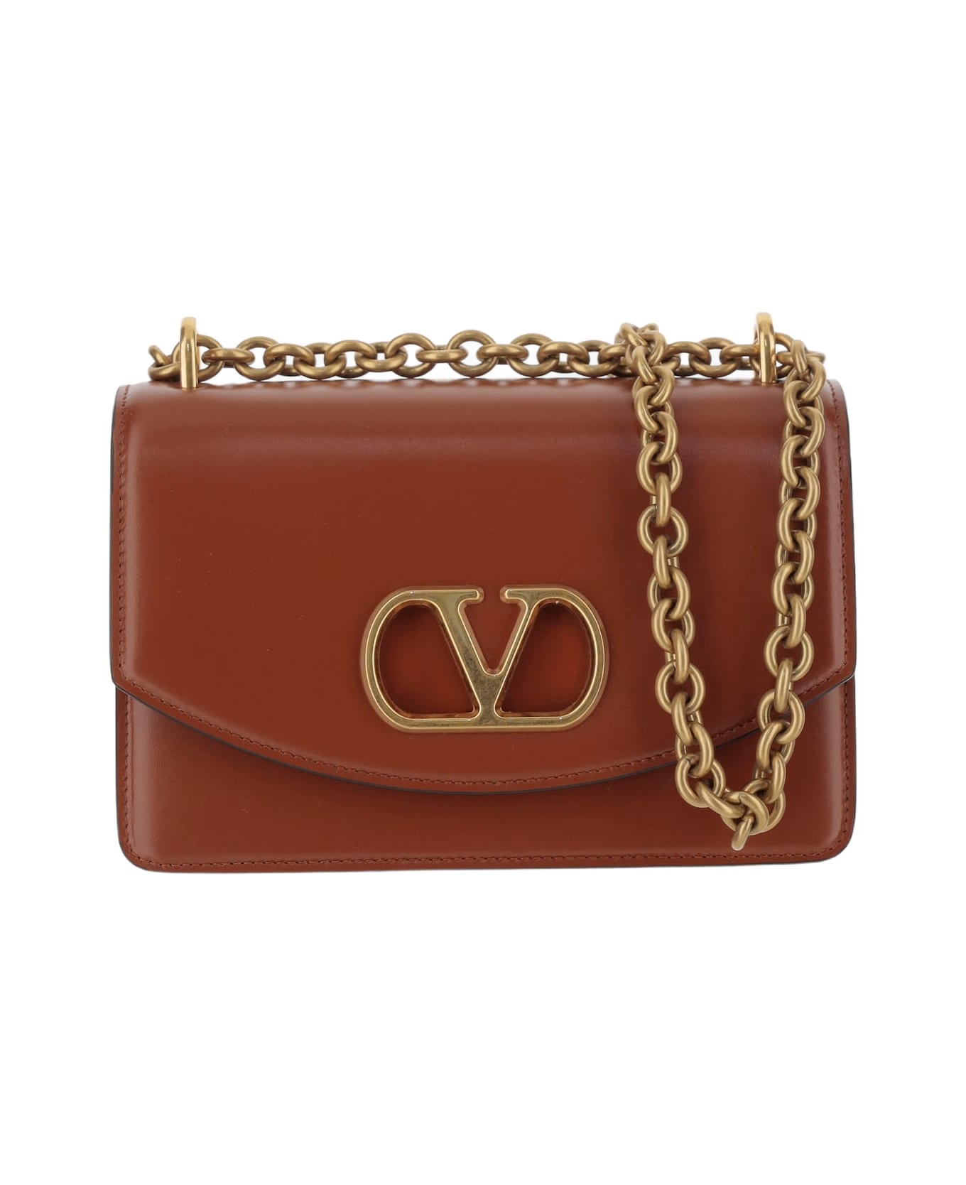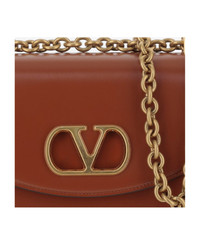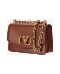 Valentino Garavani Vain shoulder bag made of shiny calfskin leather Flap and magnetic button closure Signature metallic VLogo element on the front One chain shoulder strap Nappa leather lining Two interior compartments One zipper pocket and one flat pocket Leather Made in Italy Composition: 100% calfskin Made in: Italy Color: Brown Size and fit: - Height: cm 13 - Width: cm 19.5 - Depth: cm 7 Model number: 6W0B0R17GCBWUC