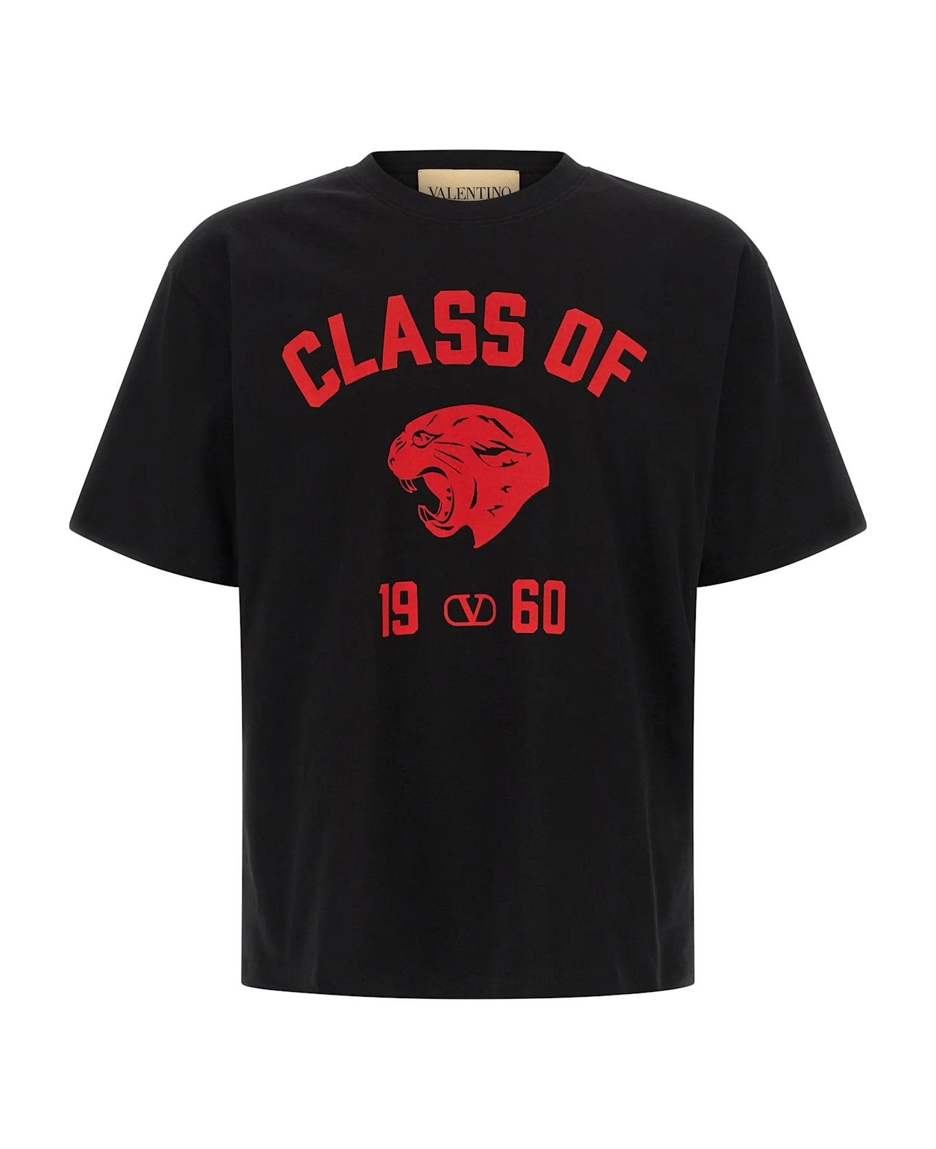 'Valentino' cotton T-shirt with front 'Panther' print, crew neck, short sleeves with dropped shoulders. Composition: 100% cotton Made in: Italy Color: Black Size and fit: - Loose fit Model number: V3MG18ABAR0NR