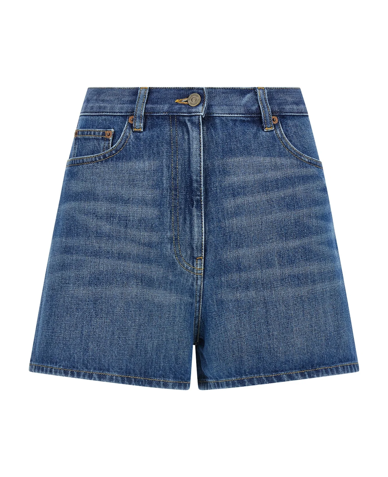 Solid denim shorts medium stone washed with contrast stitching, zip and front button closure, pockets, VGold metallic antiqued effect detail on back pockets. Composition: 100% cotton Made in: Italy Color: Blue Size and fit: - true to size fit Model number: B3DD28S9Y8558