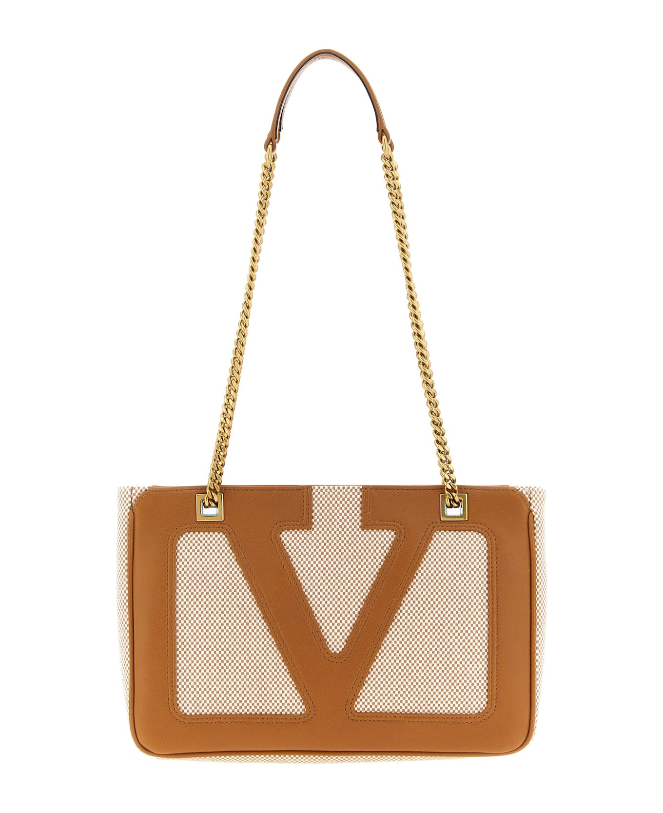 Viva Superstar' small canvas shoulder bag with contrast maxi VLogo Signature leather, double sliding leather and chain handle, zip closure, back zip pocket. Composition: 100% cotton Made in: Italy Color: Brown Size and fit: - W 27 x H 18 x D 3 cm Model number: Y2B0R14GLR9QR