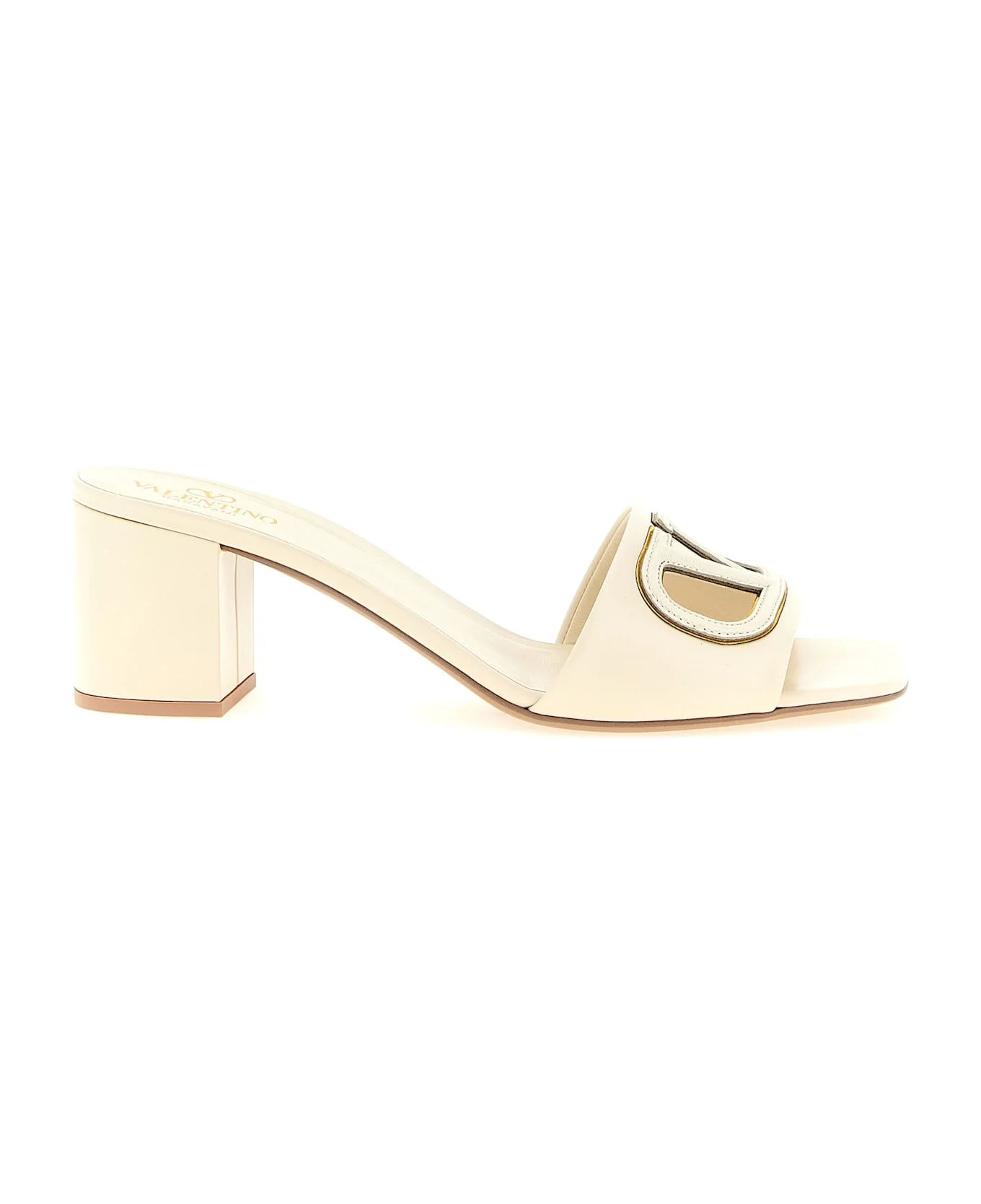 Nappa slides, cut-out Vlogo Signature band, big heel, leather sole. Composition: 100% calfskin leather (Bos Taurus) Made in: Italy Color: White Size and fit: - EU WOMAN - Heels: 6 cm Model number: W2S0IR3RLLB24