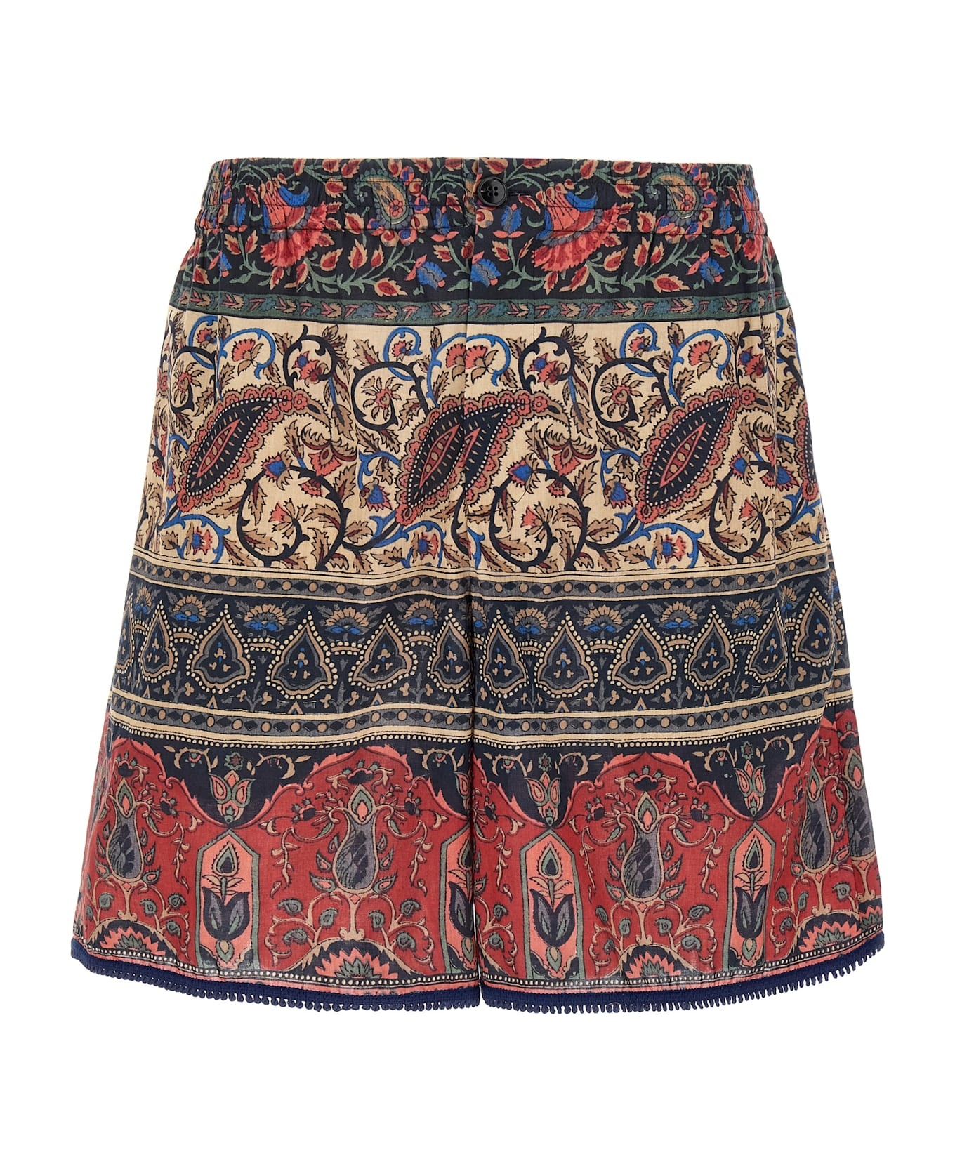 COTTON MUSLIN BERMUDA SHORTS WITH VOYAGE IMAGINAIRE PRINT AND PASSEMENTERIE TRIM