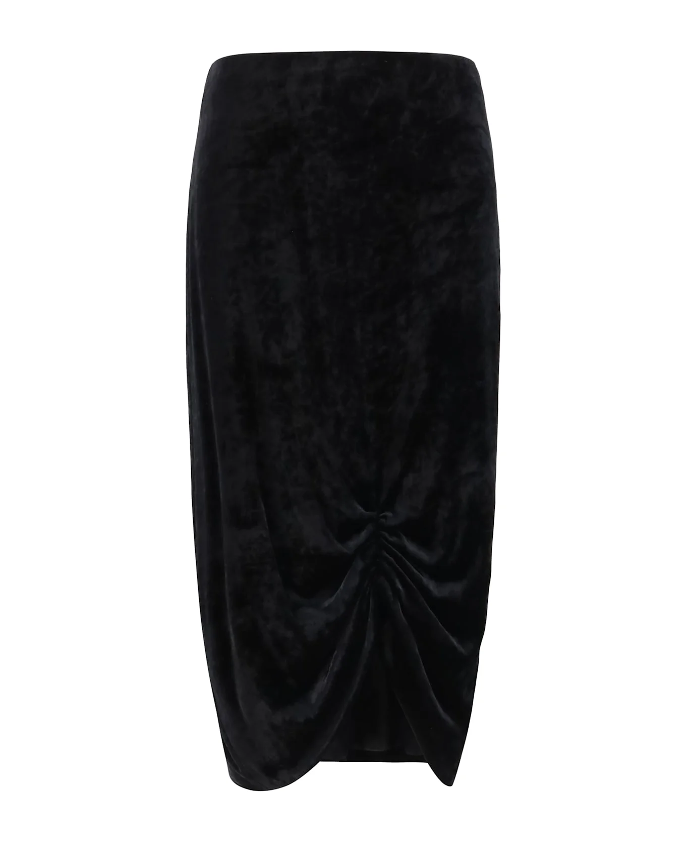 The velvet skirt by valentino features elegant front draping that adds movement and refinement to the silhouette. it is designed with an inner grosgrain belt for enhanced structure and fit, while darts at the back shape the figure. a side zip and hook-and-eye closure complete the piece with discreet functionality. Composition: 77% % Viscose, 20% % Silk, 3% % Elastane Made in: Italy Model number: 8B0RAEZ5A640NO