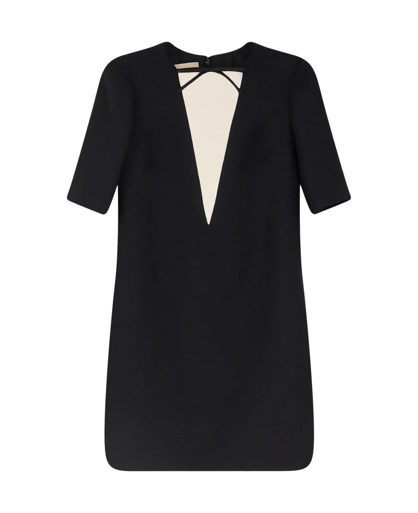 Zip and hook-and-eye closure at the back Squared neckline with bow Short sleeves Contrasting insert on the front Made in Italy 65% virgin wool, 35% silk Lining: 100% silk SKU: 8B3VAHZ71CF0NA Made in: Italy Color: NERO AVORIO Model number: 8B3VAHZ71CF0NA