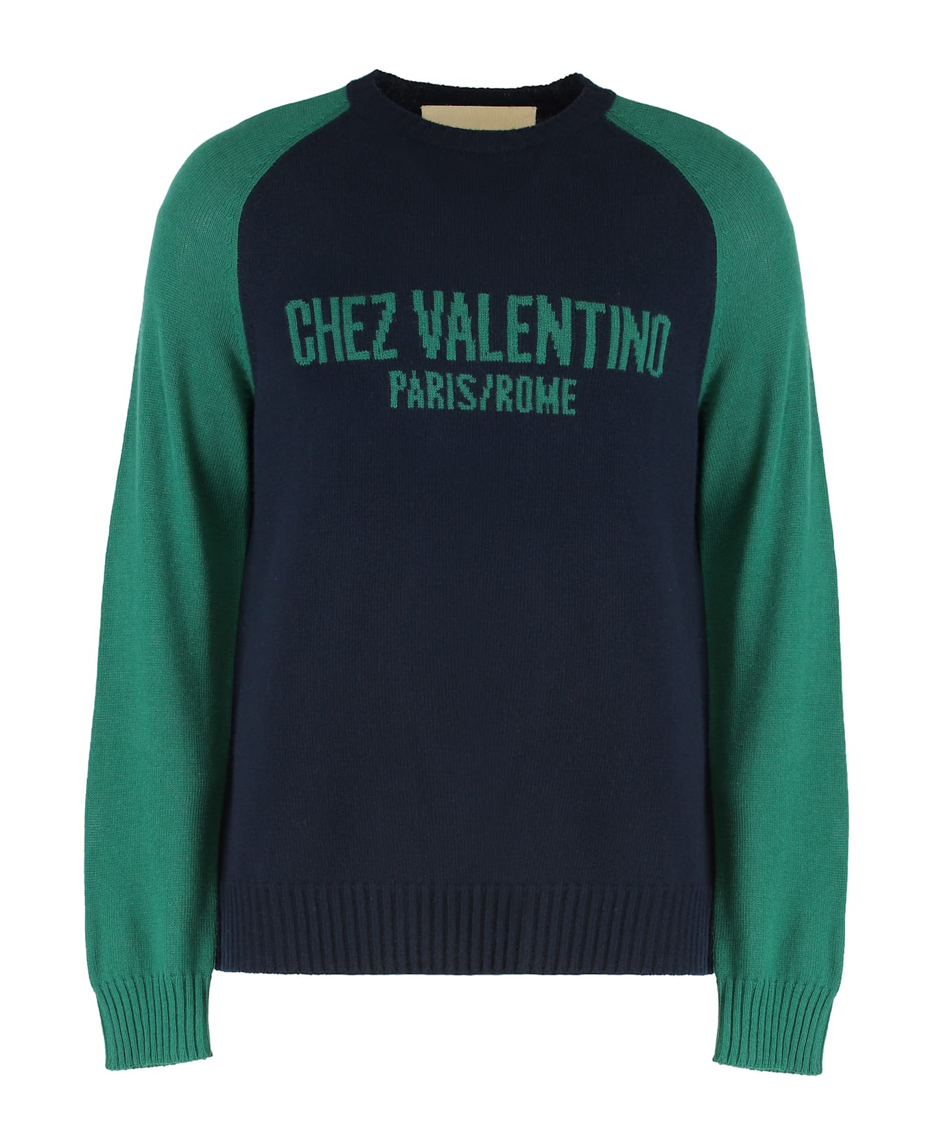 WOOL AND COTTON SWEATER WITH CHEZ VALENTINO JACQUARD PATTERN