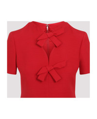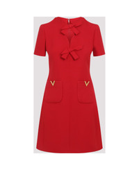 Valentino Red Virgin Wool Mini Dress. Crafted from red virgin wool and silk. Round neckline, front cut-out with bows detail, two front pockets adorned with metal V-logos. Short sleeves, back hook and concealed zip fastening. Straight hem, slightly flared. Made in: Italy Color: M Paris Model number: 6B3VAEV11CFR9M