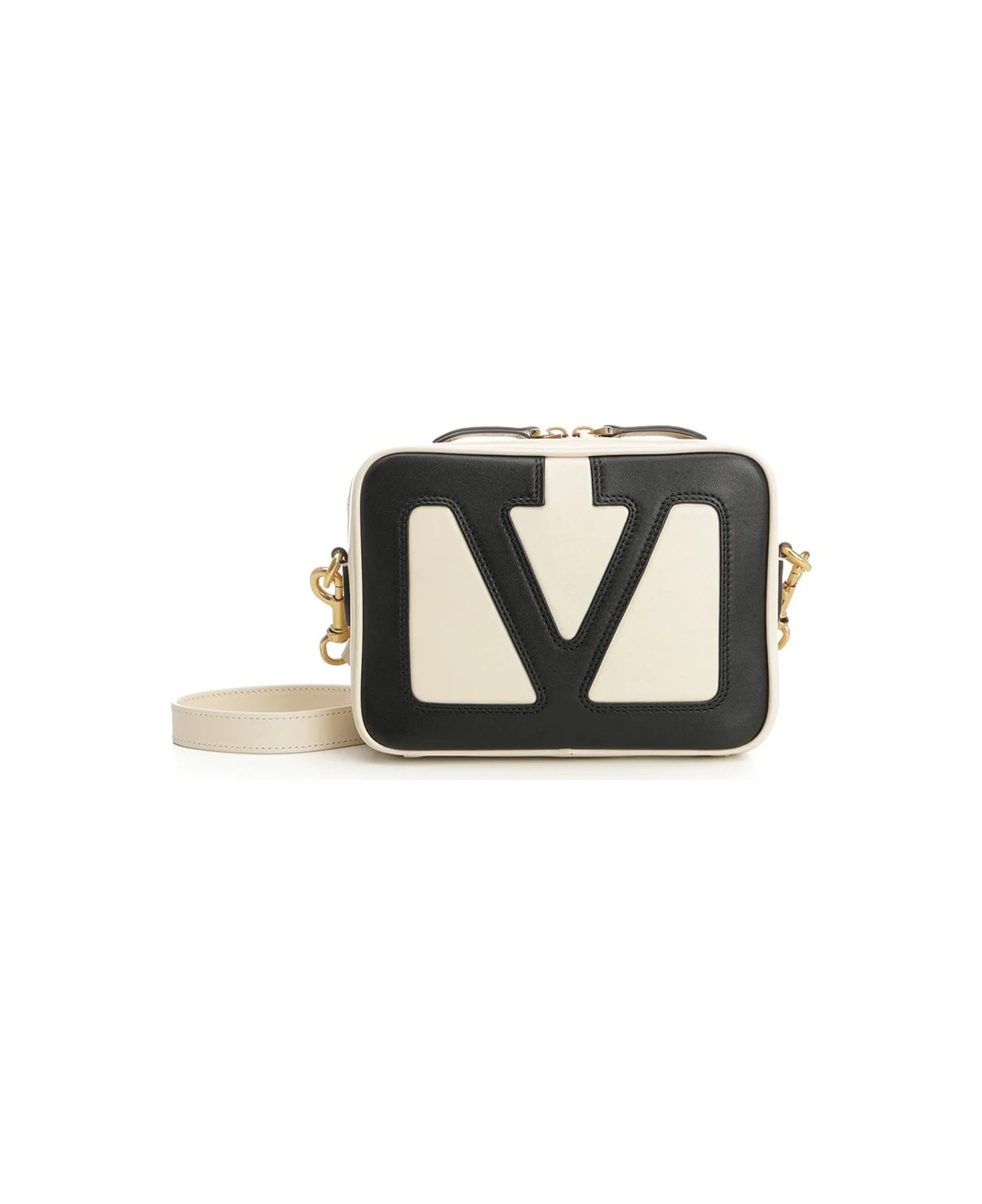Valentino Garavani 'Viva Superstar' nappa shoulder bag with maxi VLogo Signature in contrasting leather, antique gold-tone hardware, zip closure, nappa lining, inside card holder pocket, outside flat zip pocket, removable chain and adjustable and removable leather shoulder strap. Composition: AN100% Made in: Italy Color: NEUTRALS/BLACK Size and fit: - W.20 X H.15 X D.6 cm Model number: 7Y2B0R86PTJR4V