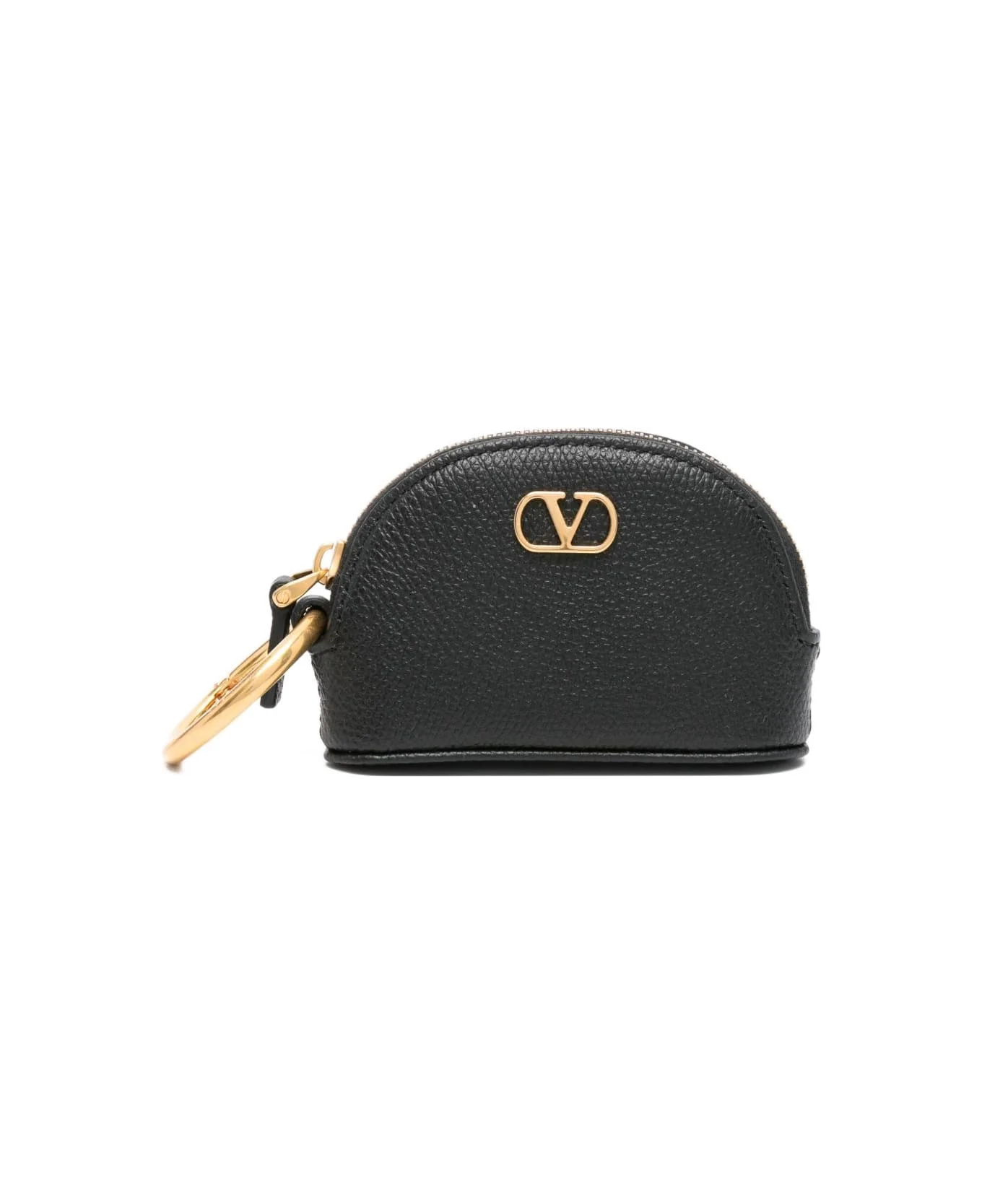 Valentino Ready To Wear black calf leather gold-tone logo zip fastening half-moon shape keyring attachment Composition: Outer: Calf Leather, 100% Made in: Italy Color: Black Size and fit: - LENGTH: 10.0 Centimetres - WIDTH: 6.0 Centimetres - Model number: WP0AK7SNP0NO