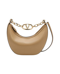 Cappuccino-coloured grained calf leather small hobo bag from Valentino Garavani featuring a top zip fastening, a detachable shoulder strap, a logo chain, an internal flat pocket, contrasting front embossed lettering and gold-tone metal hardware. Composition: 100% Leather Made in: Italy Size and fit: - Width 28 cm x Height 15 cm x Depth 12 cm / Adjustable shoulder strap length min 87 cm - max 98 cm / Handle drop: 14 cm Model number: 5W2B0Q42JDKGH9