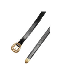 'Vlogo Signature' belt in brushed calfskin by Valentino Garavani, featuring a rounded buckle, a metal loop and tip with a Vlogo Signature detail, and antique brass-finish hardware. Composition: VT100% Made in: Italy Color: Black Size and fit: - H. 20mm Model number: T0SQ9QBH0NO