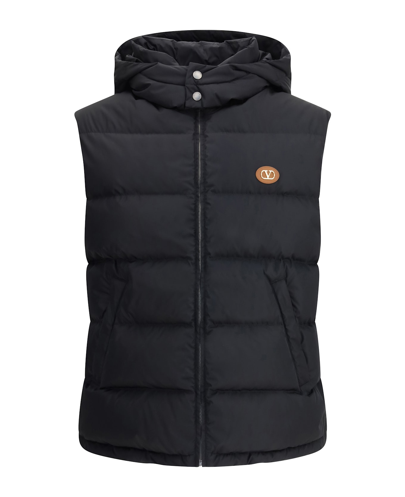 Valentino's down vest features a padded and quilted design designed to combine comfort and style. featuring a removable hood and front zipper closure, it is enriched with a leather logo patch applied on the front, which gives a distinctive and elegant touch to the garment. Composition: 100% % Goose Down, 100% % Polyamide Made in: Italy Color: Black Model number: VCQA406FN0NO
