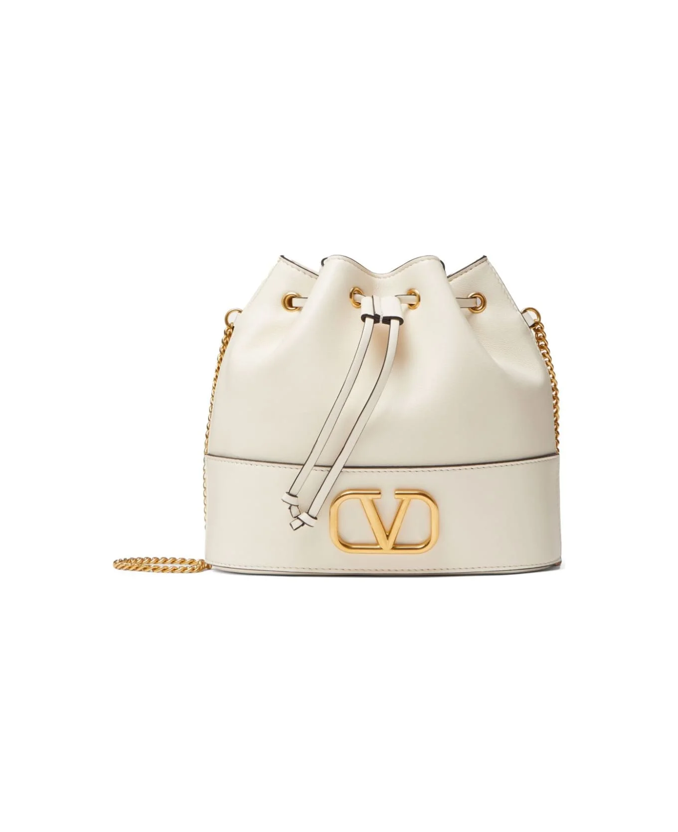 ivory white nappa leather VLogo Signature antique-effect hardware top drawstring fastening chain-link shoulder strap main compartment Composition: Lambskin, 100% Made in: Italy Color: Ivory Model number: WP0T83HPFI16