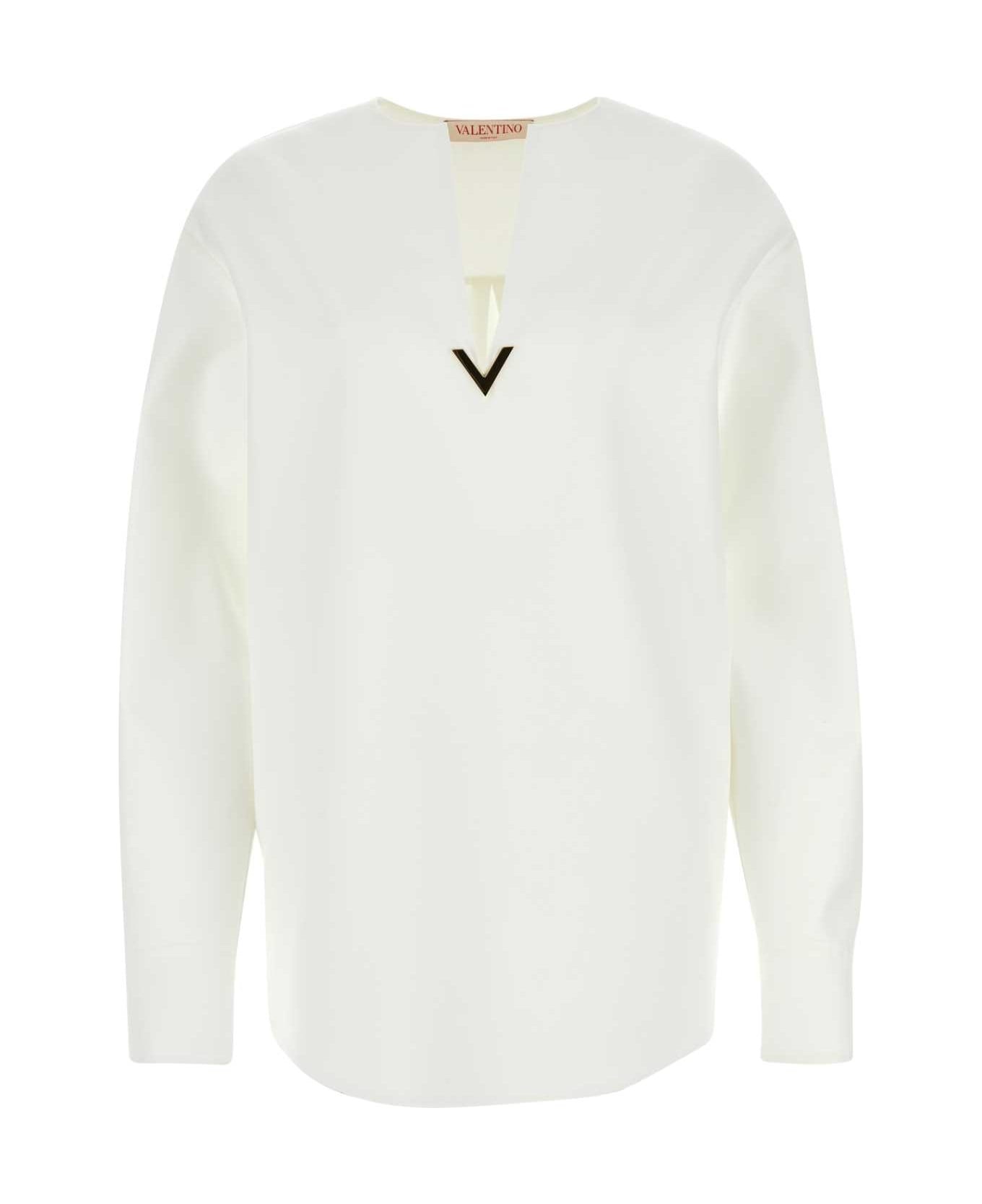 White Cotton Blend Blouse