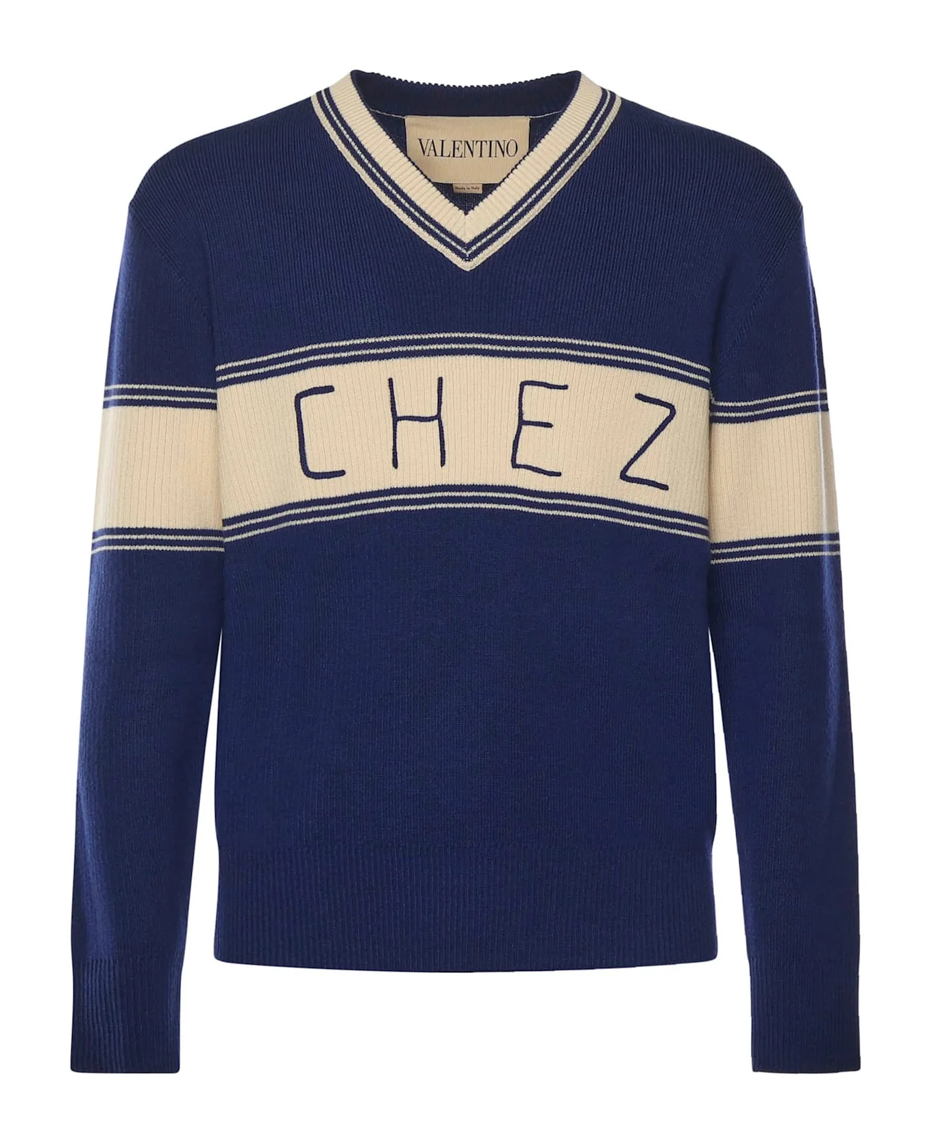 WOOL AND COTTON SWEATER WITH CHEZ VALENTINO JACQUARD PATTERN
