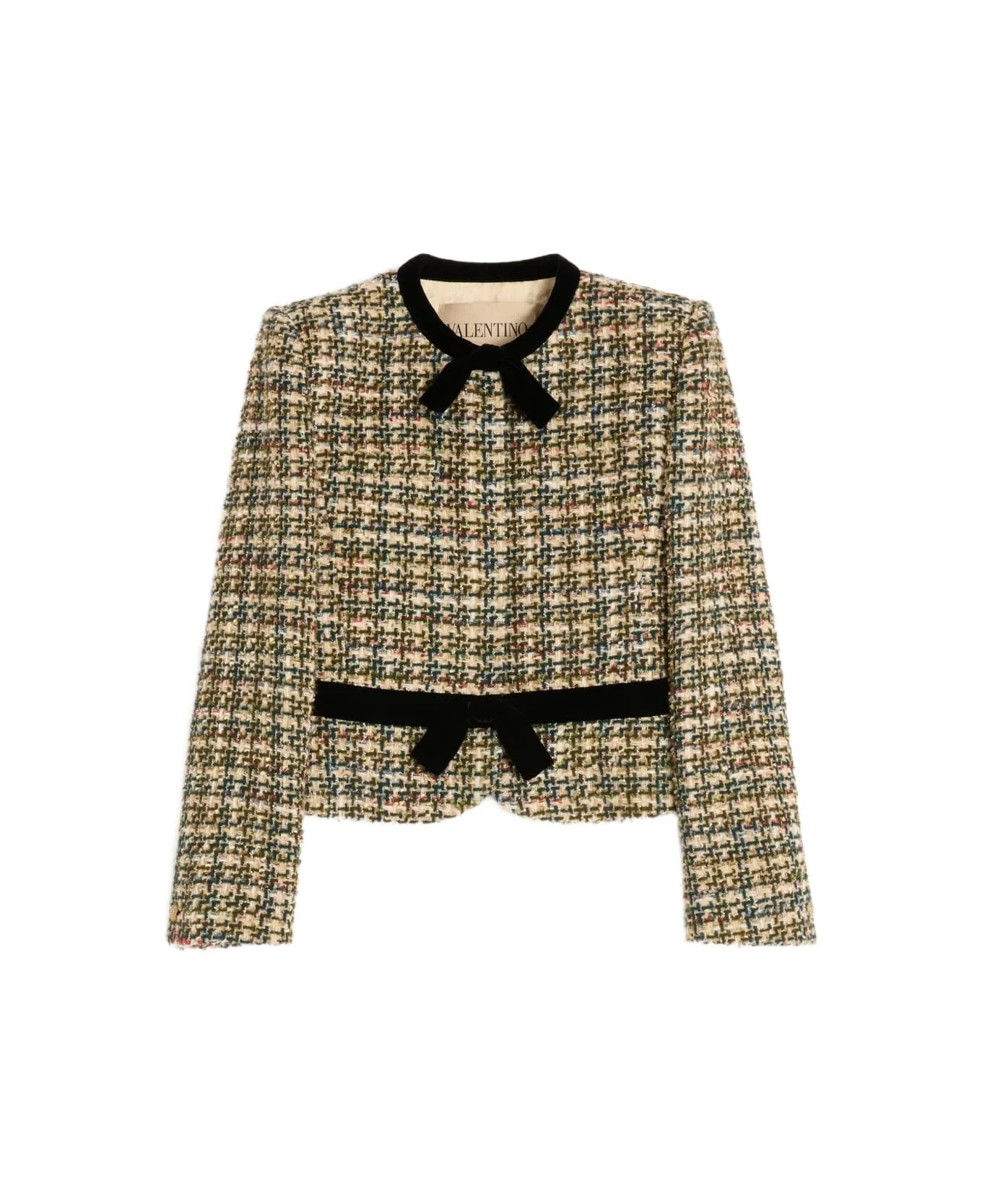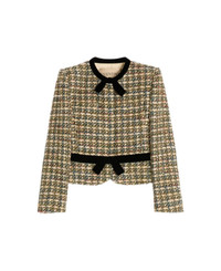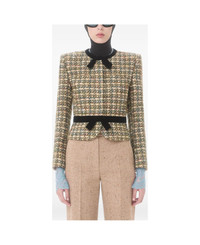 green tweed texture velvet bow snap button closure shoulder pads jewel-embellished button Composition: Outer: Wool, 36% , Polyamide, 22% Made in: Italy Color: MultiColour Model number: BCE4T09R6M12