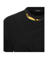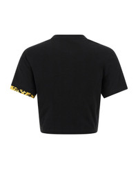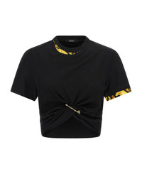 Solid color cotton jersey T-shirt with double layer 'Barocco' print inserts, crop style with front metal 'Safety Pin' detail, crew neck, short sleeves. Composition: 100% cotton Made in: Albania Color: Black Size and fit: - true to size fit Model number: 10209011A148331B000