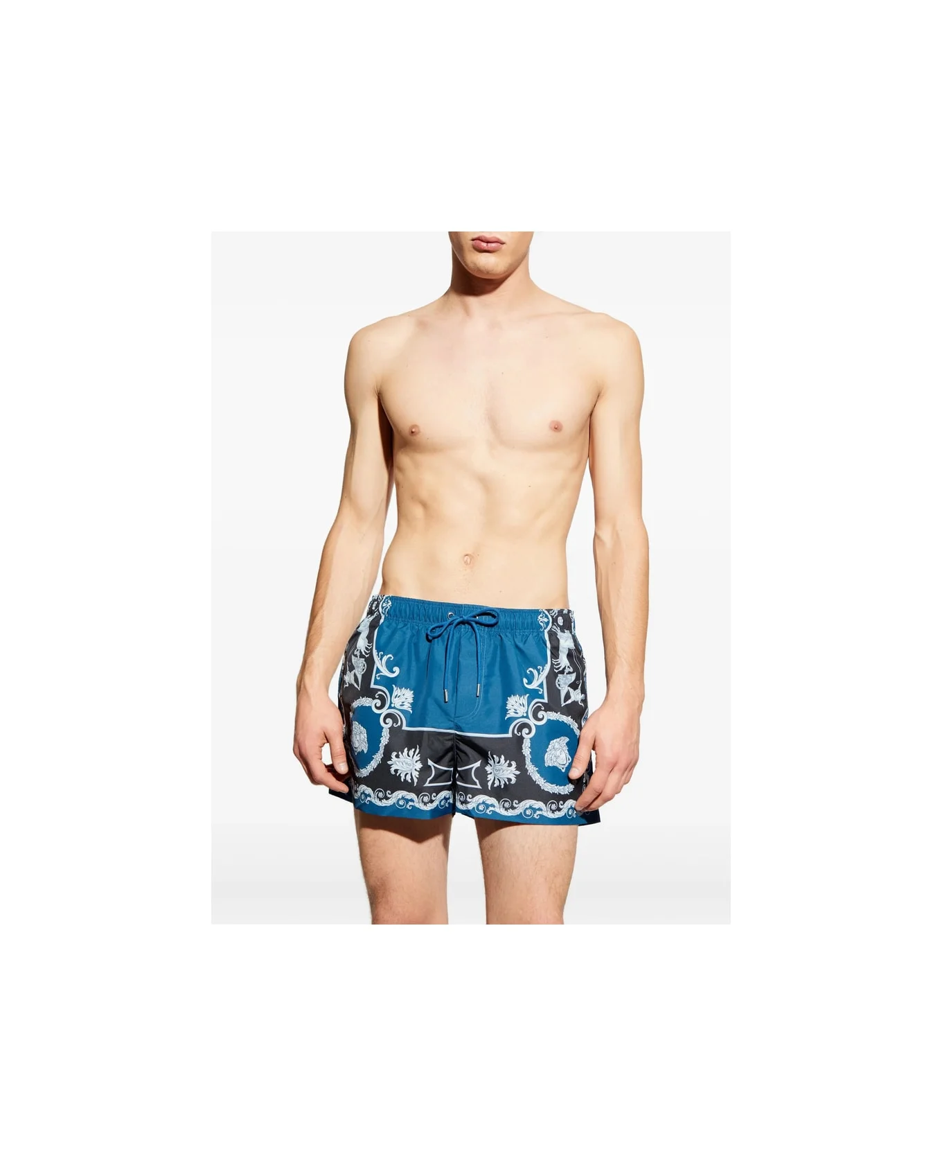 blue printed drawstring-fastening rear patch-pocket elasticated-waistband Be mindful to try on swimwear over your own garments. Made in: Italy Color: BLUE/BLACK Model number: 1A168261018883